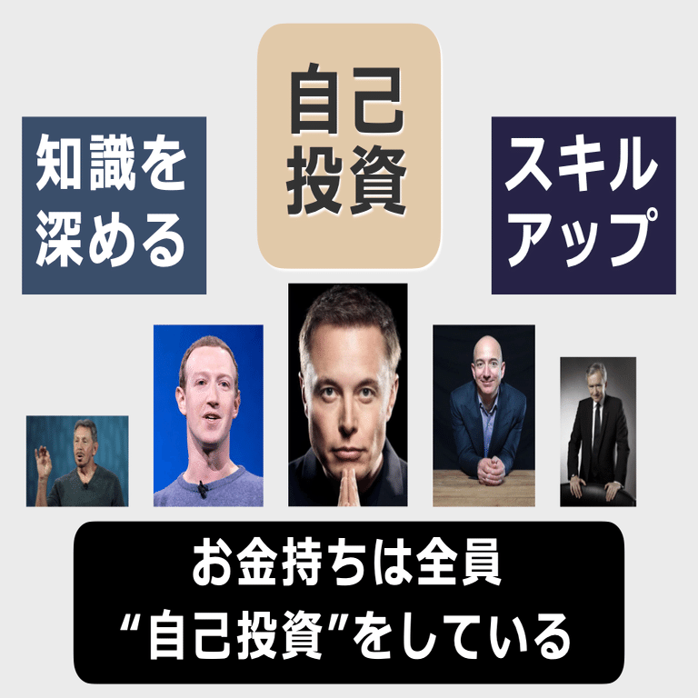 これによって、お金持ちを夢見て「株とかビットコインに全力投資するぜ!」みたいな考えを減らしてもらい、「自己投資って大切なんだ…」と気づいてもらいます。