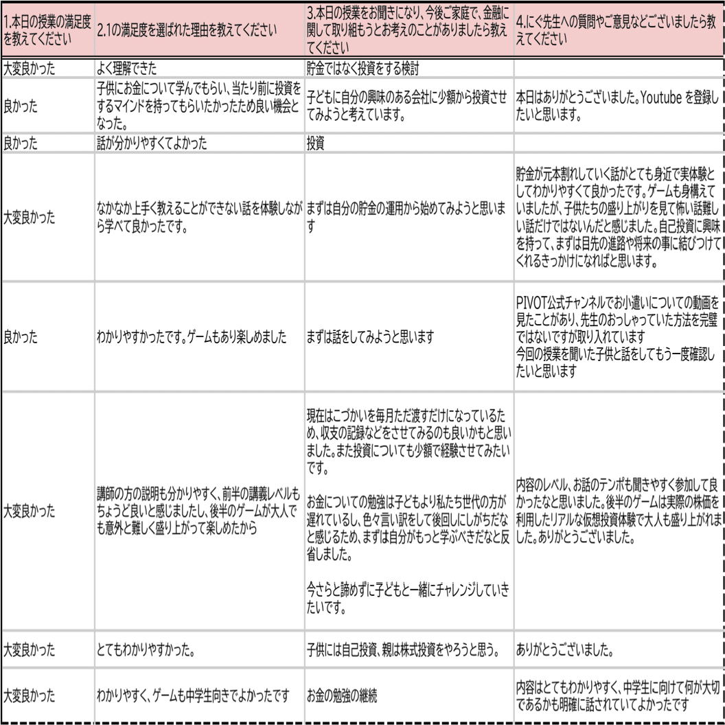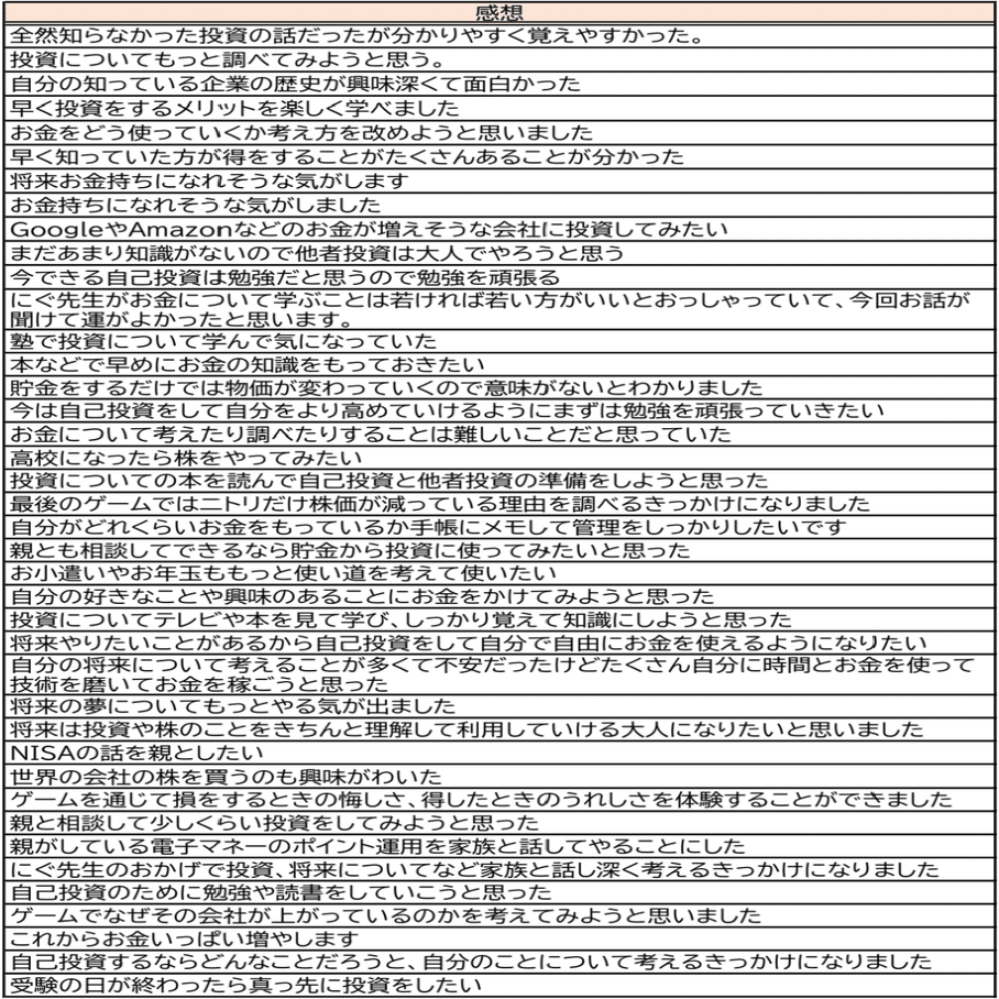 今回の桜山中学校の授業では、終わった後に生徒だけじゃなく、保護者さんからも感想をいただきました。