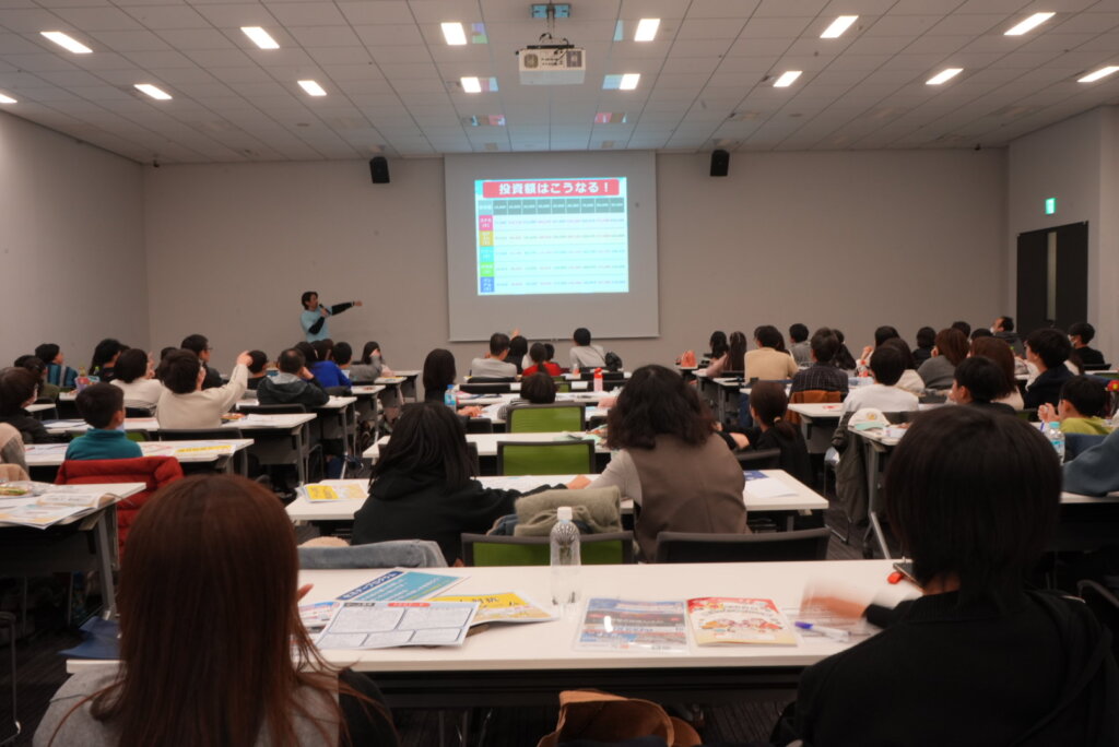 セミナーではどんなお小遣い制度が良いか?、効果を高める渡し方はどのような渡し方か?、をクイズ形式で話し、最後はいつもの家族対抗株式投資ゲームを行いました。
